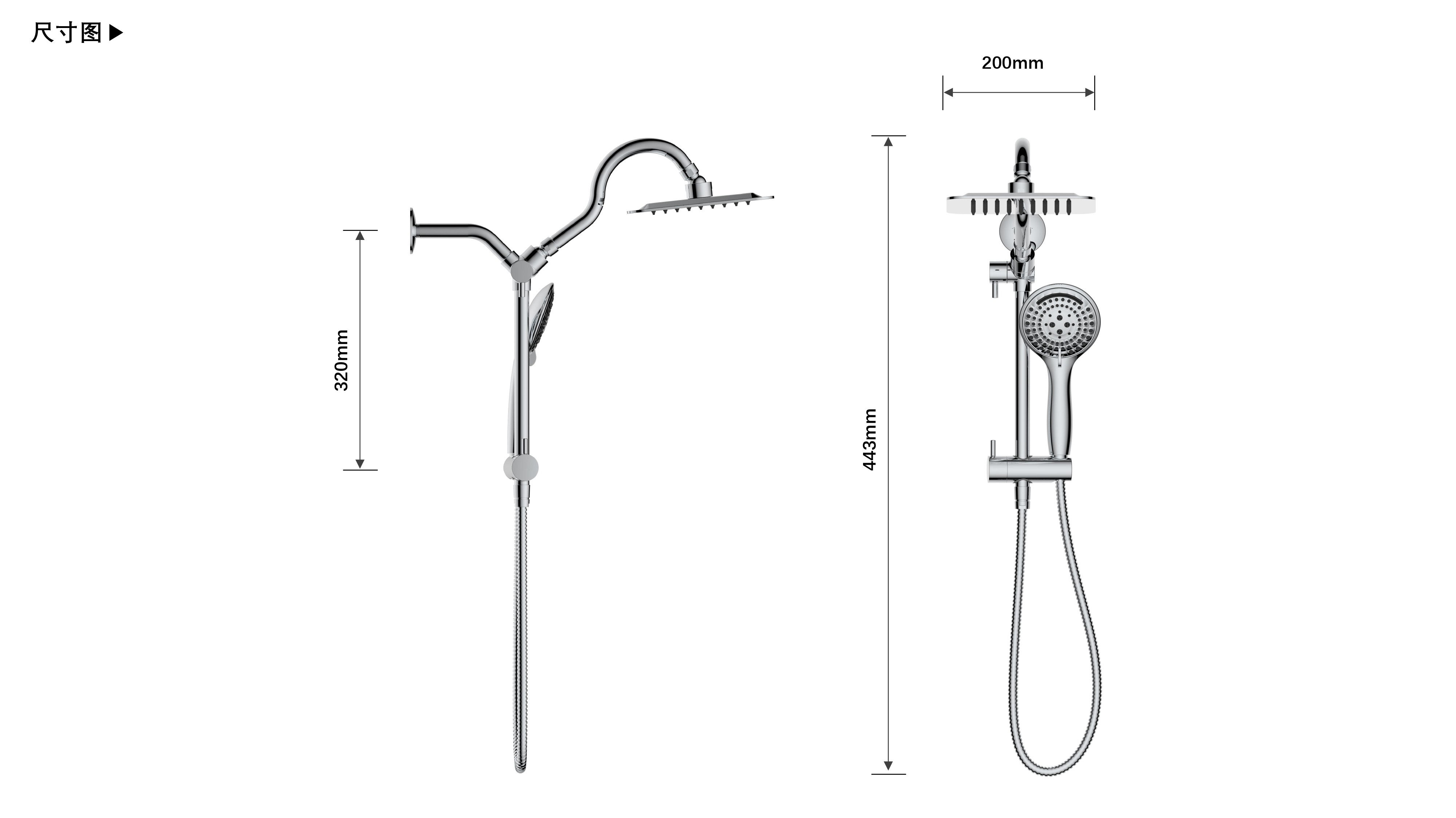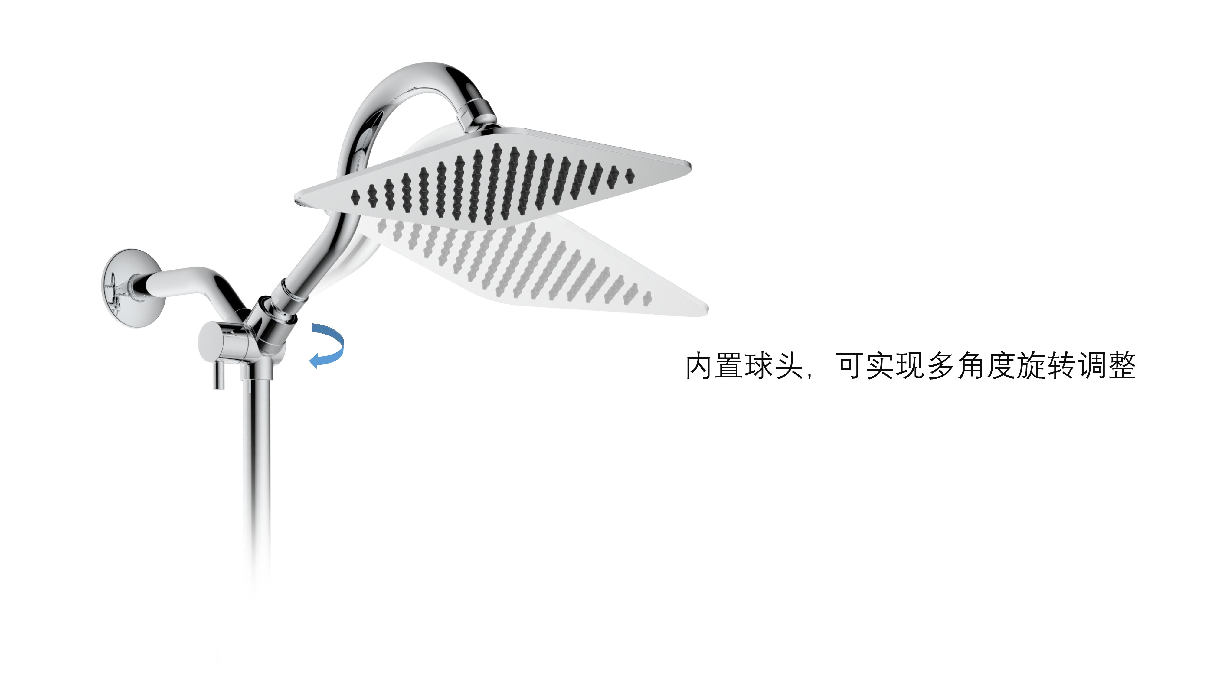 上出水彎管套裝;頂噴內(nèi)置球頭,可實現(xiàn)多角度旋轉調整;把手切換頂噴出水、花灑出水;轉動把手調節(jié)滑座高低