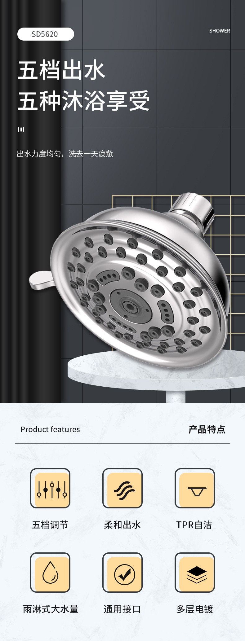 SD5620 5功能花灑