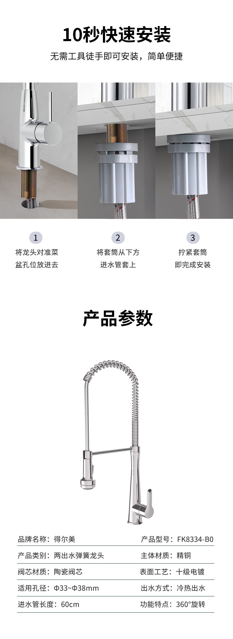 FK8334-B0 廚房彈簧抽拉龍頭